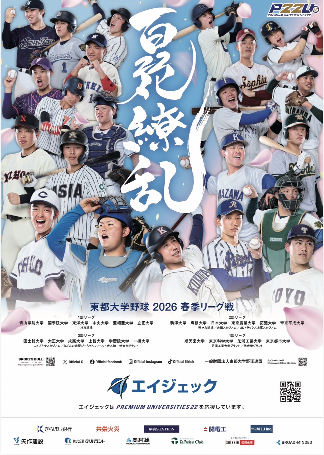 春季リーグ戦 試合時間変更のお知らせ 試合 2026.04.04 明日の春季リーグ戦vs国士館大学第2回戦は、グラウンド不良により試合開始時刻を以下の時間で行います。 日時:4月5日(日)10:00試合開始対戦校:国士館大学会場:学習院大学グラウンド観戦:無料有観客